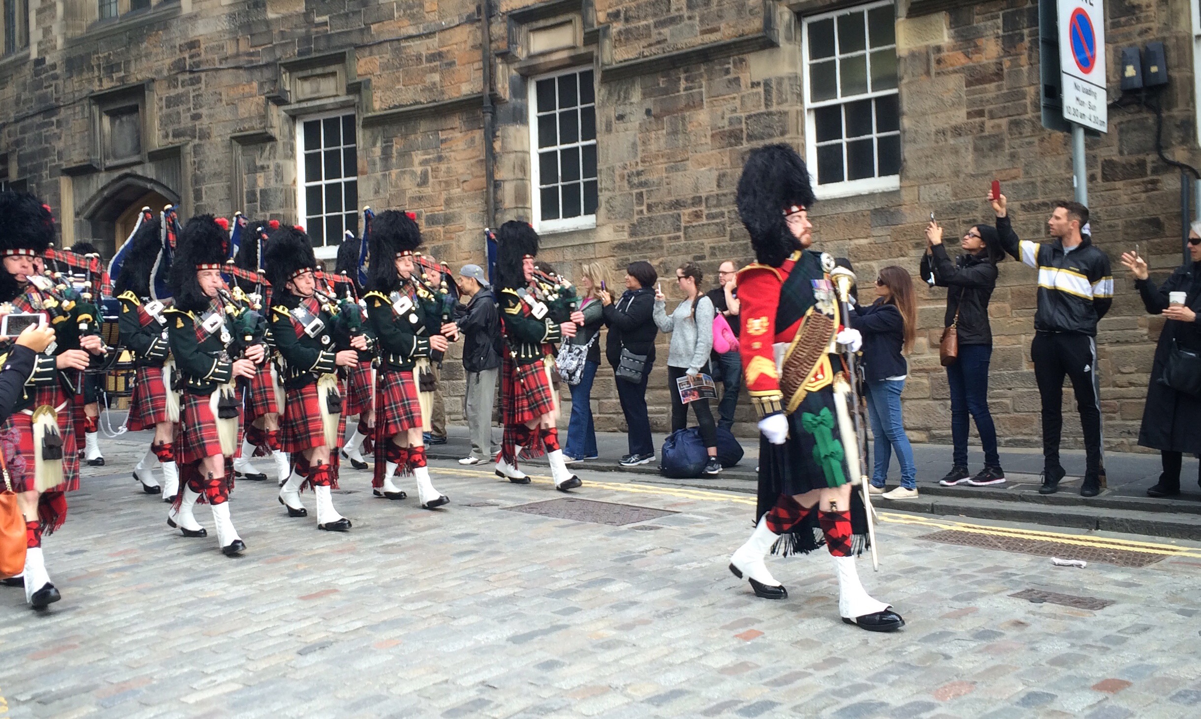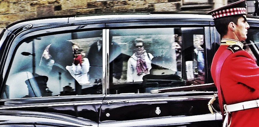Anyway, having got up early and headed out to find a coffee and do some photography, it became apparent that preparations were afoot on the Royal Mile for some sort of parade. We weren’t really sure what, but as it prevented getting the car in to pick up our luggage, we decided we may as well at least watch the show. Turned out to be the Scottish Crown Jewels on the move again, driving past in a saloon no more than a few metres away and protected by several police officers in hi-vis jackets and an impenetrable layer of bagpipers.