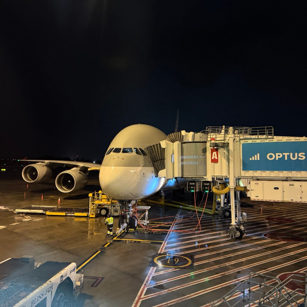 All of that was something of a change from the first part, which seemed to go out of its way to be the longest possible version of itself. The flight from Canberra to Sydney went from the far gate, did a weird extra loop over Sydney and then landed at the furthest runway, before the bus dropped us at the furthest point of the international terminal, and then our Qatar flight went from the furthest possible gate as well. The final part was having to walk the entire length of the plane to climb the stairs to our seats. Funny. Anyway, was good to have some extra space and we both got some sleep. Feeling optimistic. Let’s see how the transit goes!