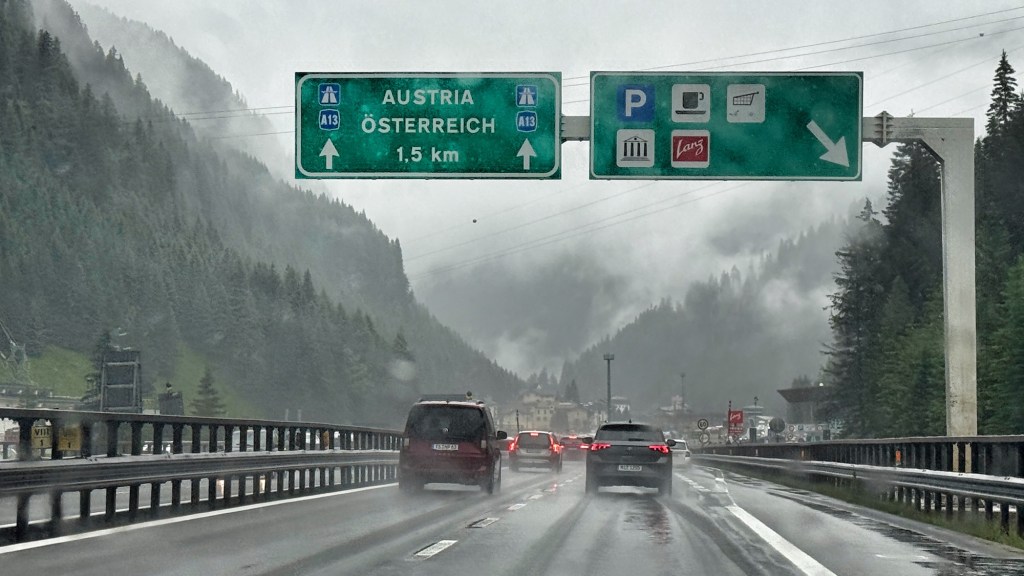 After a few days of perfectly suited mild and mostly sunny weather, today was supposed to be the rainy day, and boy, was that forecast on point. We had a 320km drive to cover, from Merano to St Gilgen, on the Wolfgangsee in western Austria, not far from Salzburg.