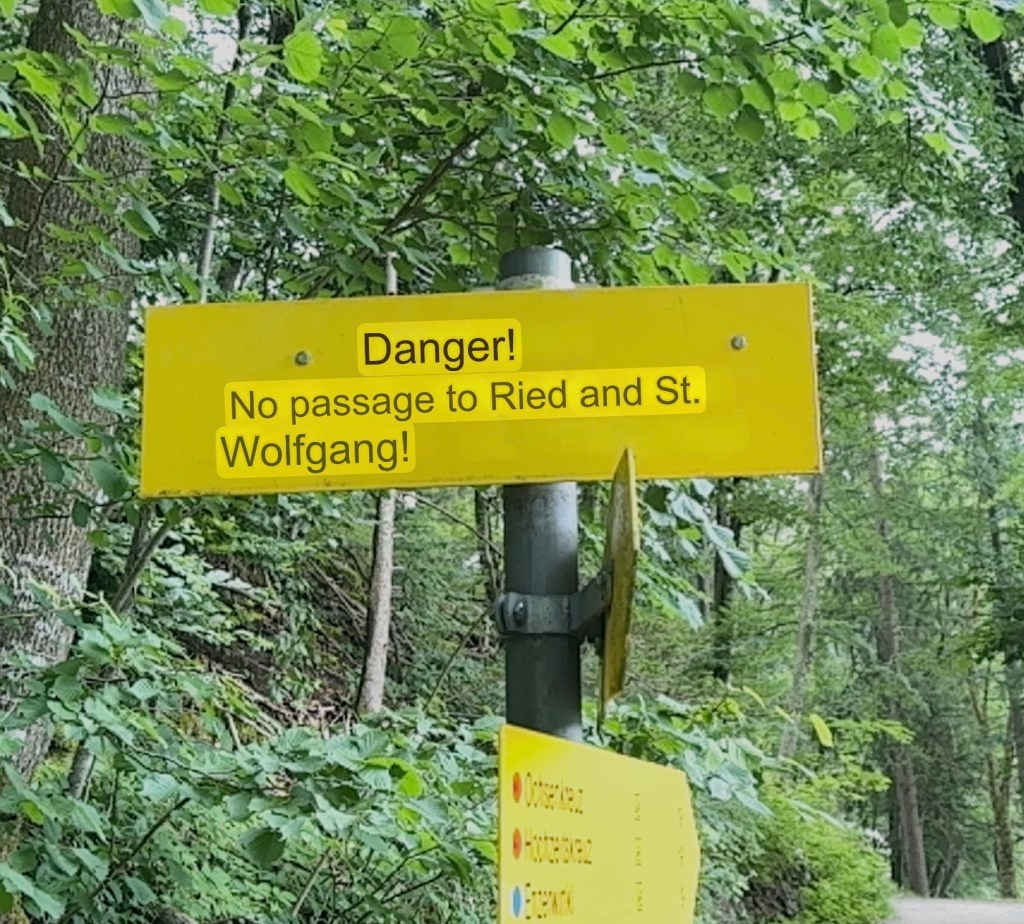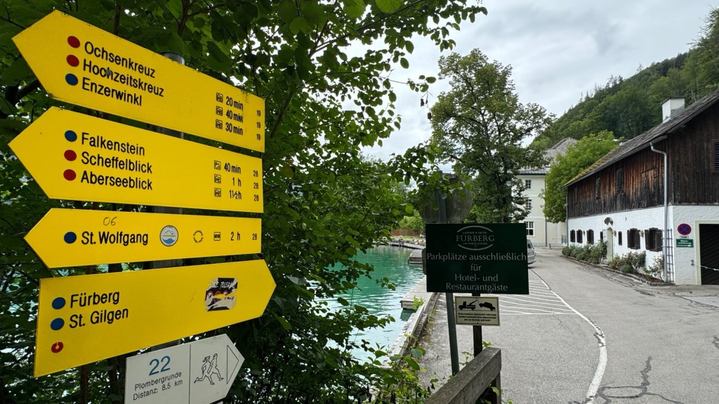 The afternoon was decidedly more active and visual. First we took a ferry across to Fürberg – just a 10 min ferry ride, but it takes 2-3km off the walking leg, which was useful. We quickly picked up the signs to St Wolfgang. This one sent us on our way: