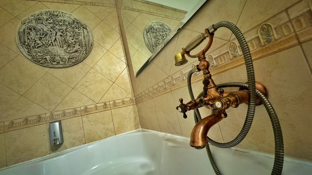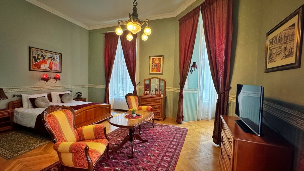Arriving into Budapest it was 36 degrees, and we opted for being ripped off by a very polite taxi driver rather than repeating this mornings forced march for 3km. It was 35 euro very well-spent! The hotel is a quirky thing that we found – called the Cotton House Hotel, it is some sort of art deco glitz sort of theme – but with high ceilings and air con, it’s cool in every sense.
