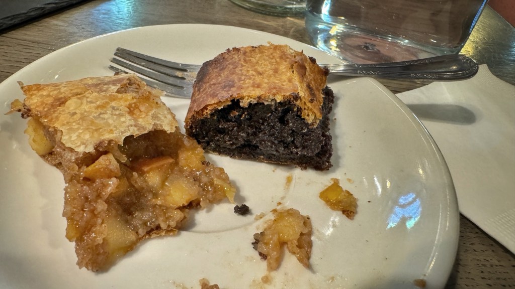 The afternoon was slow. A few video calls to check in, a family quiz, and some chilled Pinot Nero on the balcony while writing a few chapters for Kiss the postman goodbye, and then heading downstairs for Süd Tirol staples for dinner. Gulasch, worst, dumplings, a version of lasagne… it was exploratory, surprising and tasty. The delight of dinner downstairs cannot be overestimated.