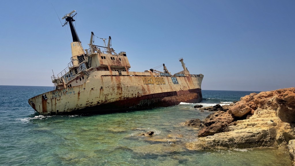 From there we made our way back down to the coast, to the shipwreck of the Edro III. It really is just right there on the point, and then a little later someone put a restaurant there, so it’s a very civilised attraction!