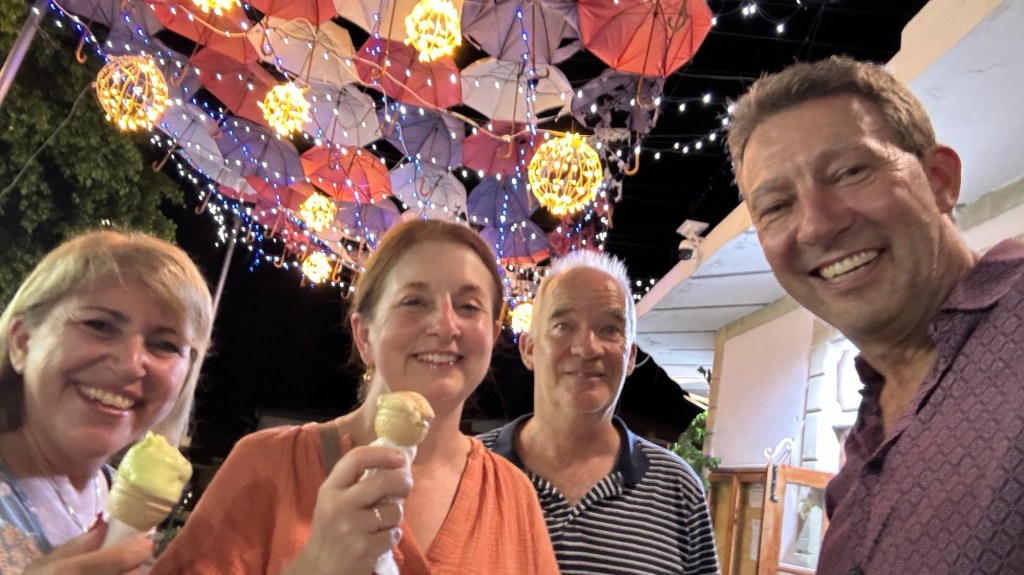 Waiting in the cool of the hotel lobby, it was easy to let our minds wander to reflections on the last few days, and the whole trip. Ellena and Andrew’s hospitality and generosity have made our Cyprus stay even more special – not just the fantastic accommodation they found, but the little jewellery shop (where Justine bought earrings) and her local bakery (where we got snacks and iced coffee), the places we would never ever see as unguided visitors.