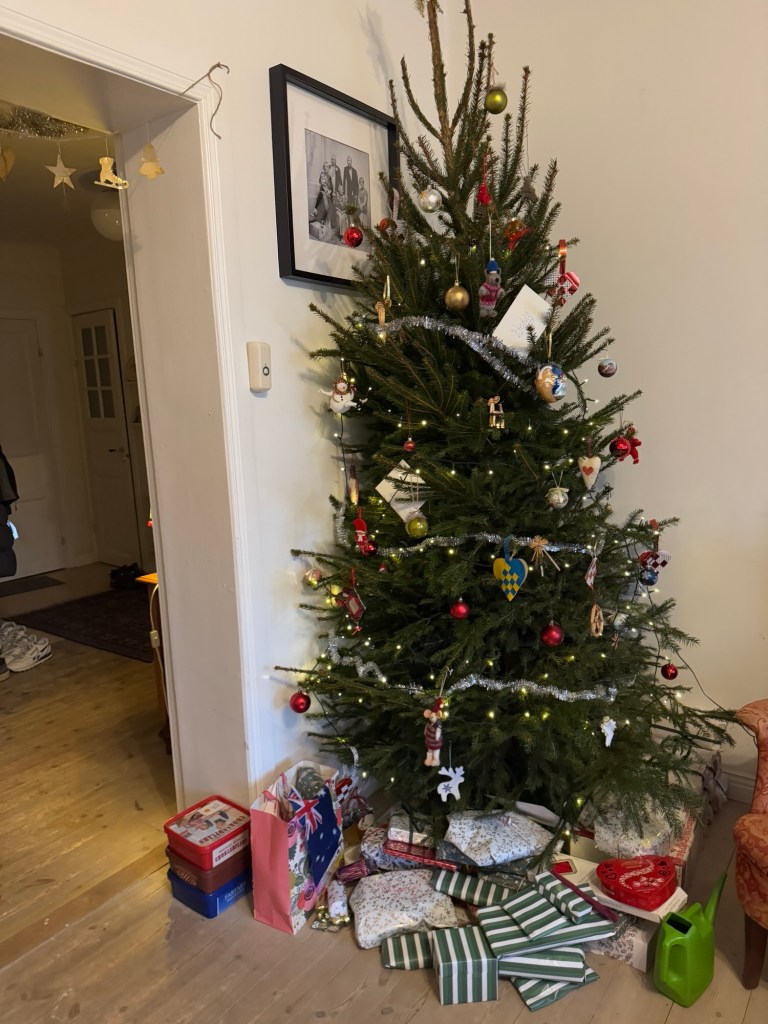 This morning allowed a slowish start, getting back to their house around 10ish for breakfast and presents. It’s cool here, but not actually cold, and if anything we’ve been a bit over-dressed much of the time. The walk across was grey and cool, but not unpleasant. Breakfast was a lovely affair of porridge and waffles and coffee, after which the party moved to the living room.
