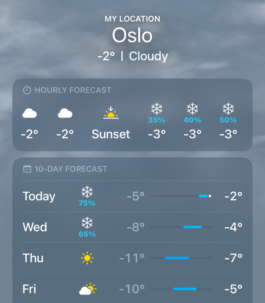 So, we are just about to push back, so time to go. Next time I’m back here, hopefully we are in Stockholm, where apparently it snowed overnight. Fun!