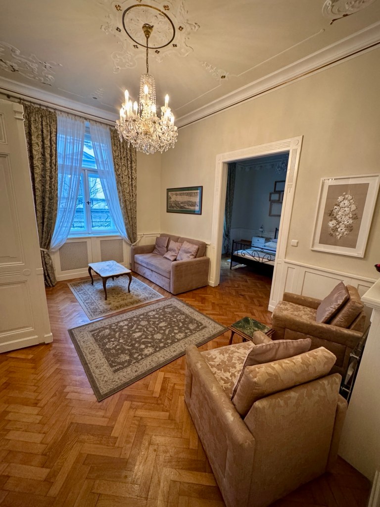Well, this one might be the new benchmark for a win, right up there with the apartment in Paris in 2019. This place seemed almost too good to be true when we booked it, but it really is as good as it looked. It’s charmingly authentic and original, fully functional, and the location is unbelievable, just a few mins walk to the Charles Bridge, but surrounded in every direction by roads and cafes and shops that we will leave mostly wistfully unexplored. You can’t ask much more than that.