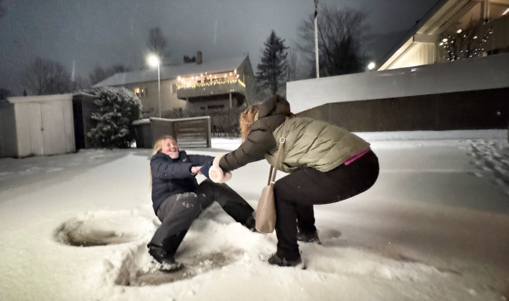 Despite the fact we are in Stockholm for five nights, in fact today was the only full “normal” day we had for checking out the city, and so we managed to pack quite a lot into it! First up, Lauren had a heap of fun playing in the snow from the previous day: