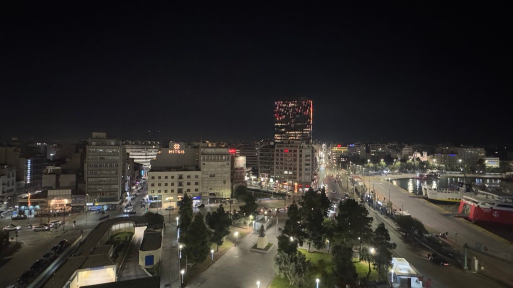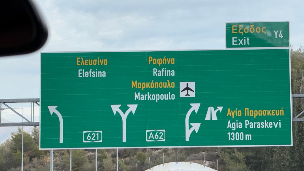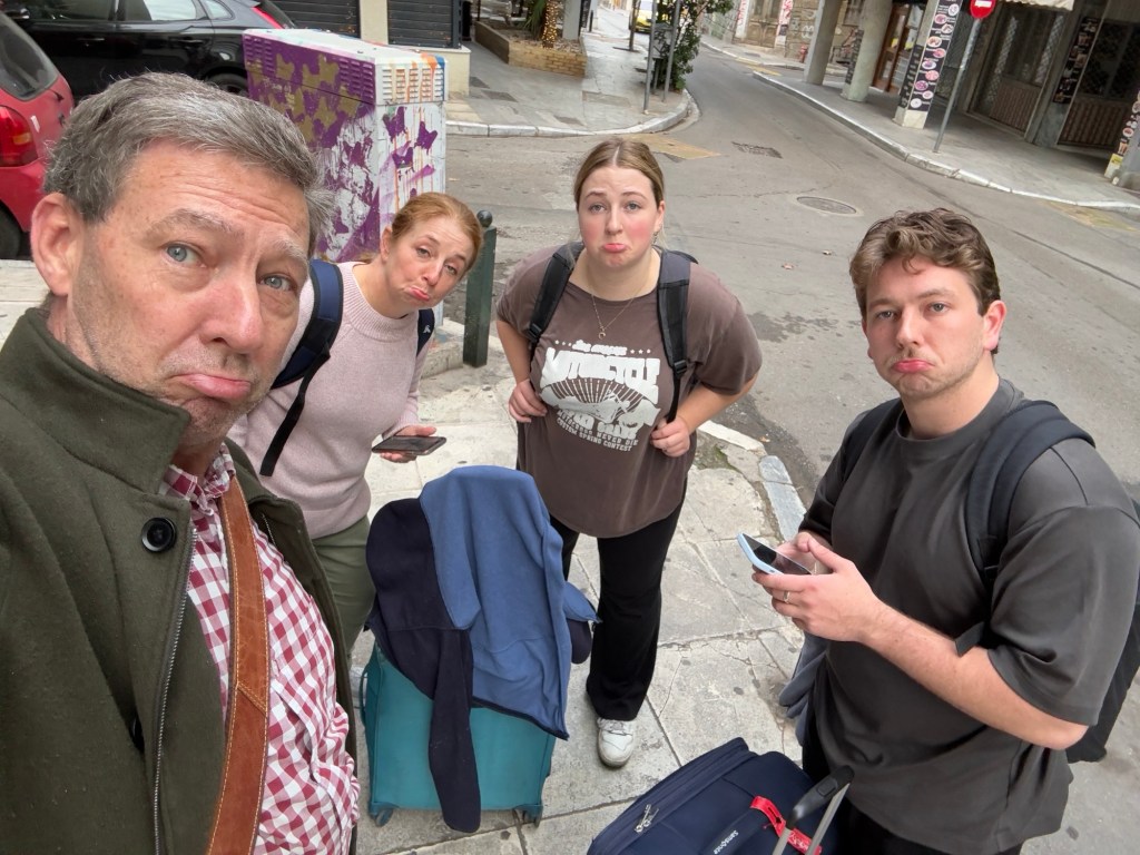 The airport then proved to be like the Acropolis – empty. All told, it was 63 minutes from taxi pick up to having checked in, cleared passport control and got through security. As I write this, Aidan and I are upstairs in a lounge I can access, and J and L are in the main terminal feasting on waffles and orangutans and sloths and chai lattes. Gate is due to be announced in an hour and flight in two, so I suspect no one will speak a word to each other in that time!