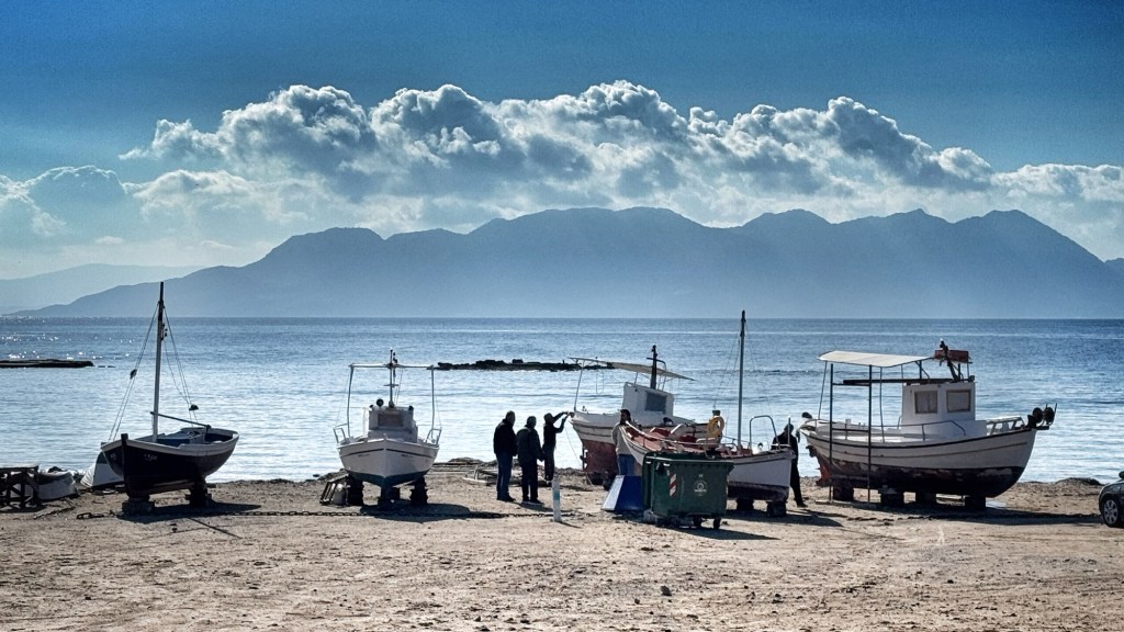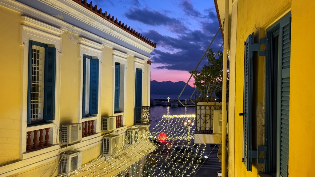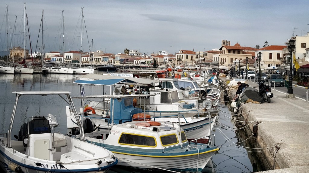 We arrived at Aigina by ferry approximately 4 days ago, or so it feels. It’s actually been about 6 hours, but they have all been in daylight and we are in a single layer of clothes, sans gloves and scarves. Aidan is in shorts. Somehow, we’ve gone from a Nordic winter wonderland to the Greek islands, and done that in ways that are more figurative than literal.