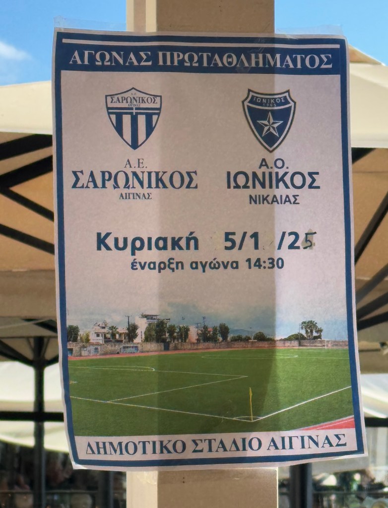Other highlights have included going to see a local soccer match, and the Epiphany ceremony. The soccer match we saw advertised on a poster, and seemed to be two high-level amateur teams, one local and one from Athens.