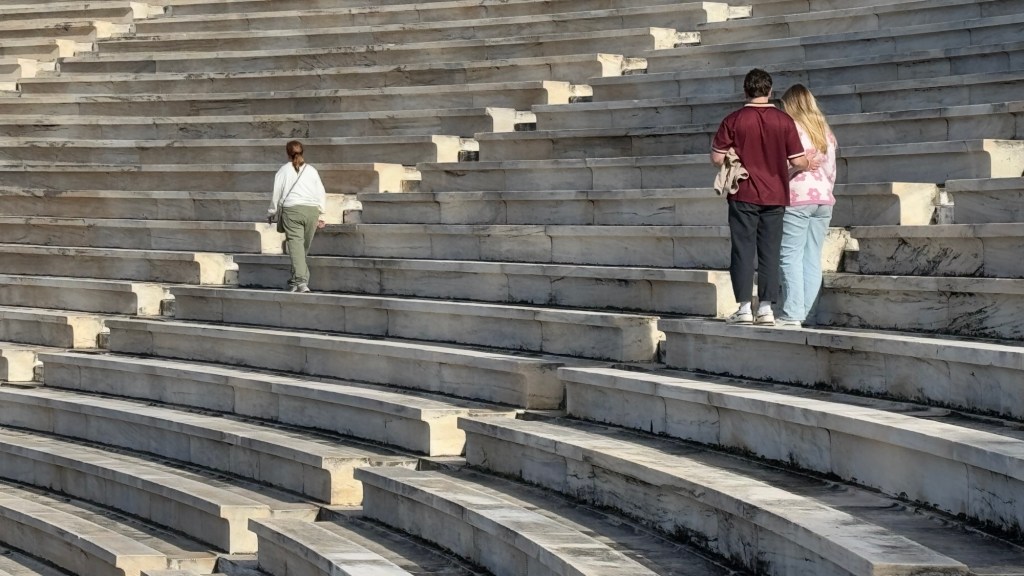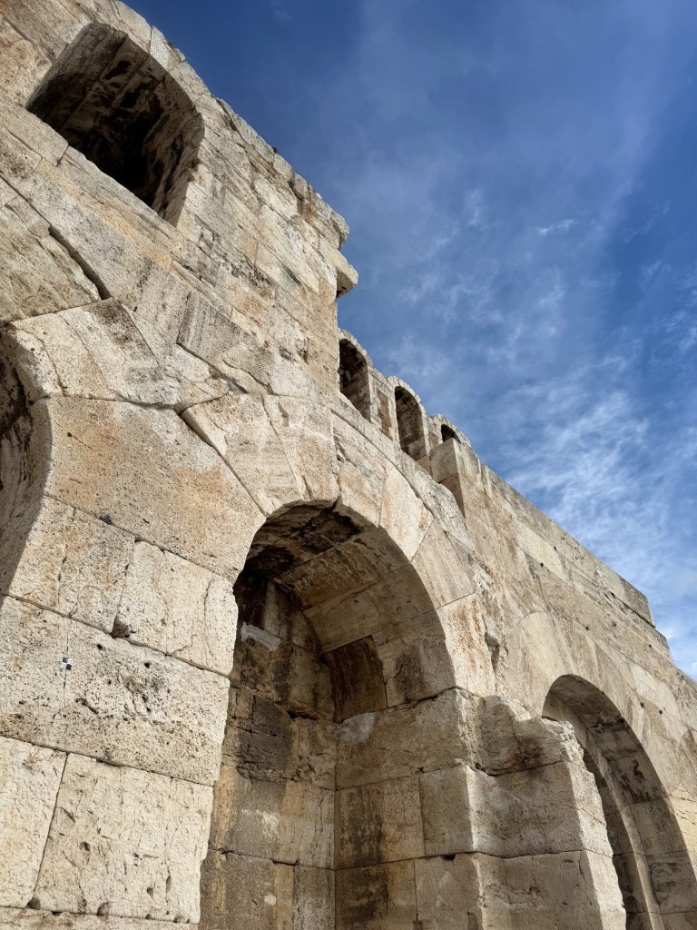 I knew the place was going to be impressive. The architecture and the engineering and the history meant it couldn’t be anything else. What I (we) didn’t expect was the silence. In the middle of Athens, and perhaps the biggest historical tourist site on the planet – we had Dionysuses Theatre to ourselves. Not mostly to ourselves, entirely to ourselves. It was surreal.