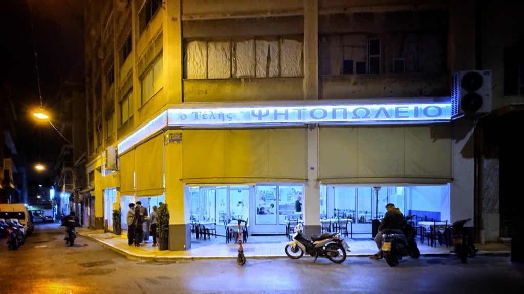 Last night was suitably low key. Coming down from Mt Lycabettus, we went to a restaurant we’d been calling past for a few days, and then stopped at a wine bar I’d been similarly eyeing off for a last negroni.