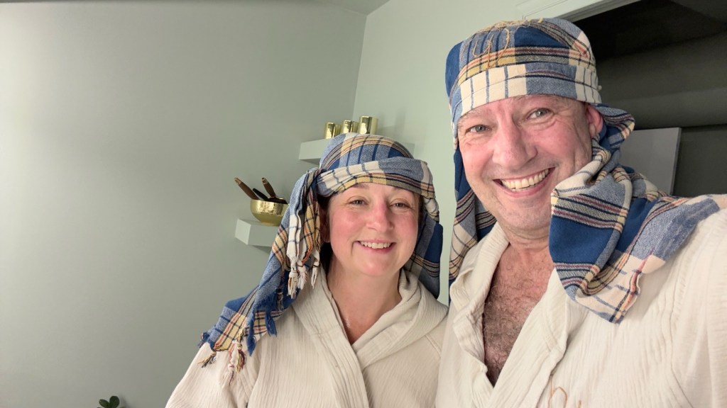 The massage was an hour of full body massage, exfoliation, face masks, hair washing, hair masks, etc; all while being intermittently doused with warm and cool water, before it finishes with a huge silver bowl of cold water being thrown over you. It wasn’t quite as cold as jumping in the Baltic like we did a few weeks ago, but there was a similtude! At the end they wrap you in gowns and towels and send you on your way, some combination of exhilerated and bemused.