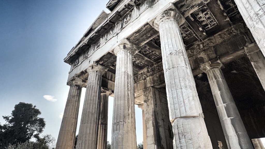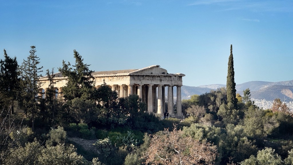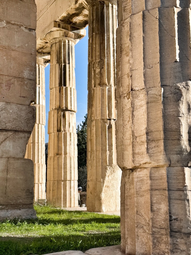 Actually, there is another temple, in the Ancient Agora (literally the centre of town, the markets, the public spaces of an accent city) called the Temple of Hephaestus, which is like a quarter-scale model of the Parthenon, and which is almost more impressive. It has the same design, but is more complete (and less under renovation / preservation), and you can just walk around it. It is still monumental in scaled and somehow I found it actually more impactful and memorable than the big one.