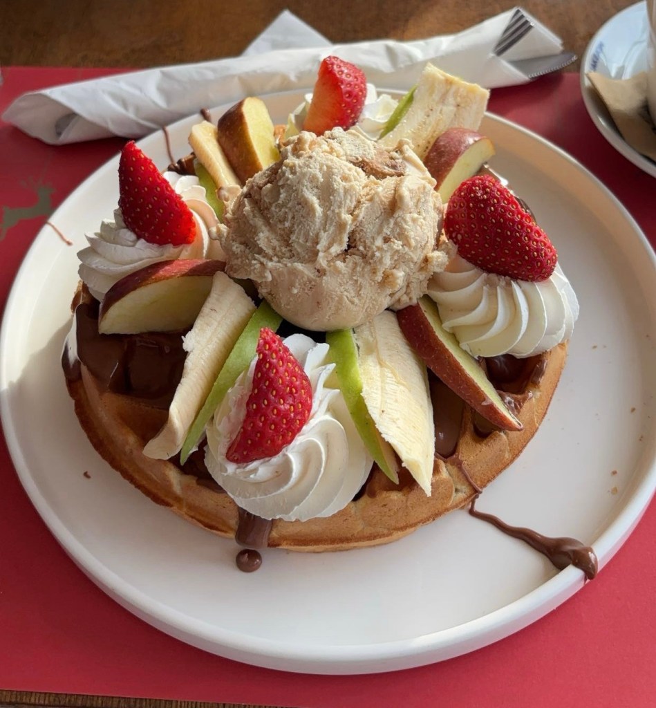 We went back to a place we’d had breakfast a few times, but today they had no breakfast menu, just thousands of options for pancakes and waffles (no, we don’t understand either). Some people were pretty pleased with their choices.